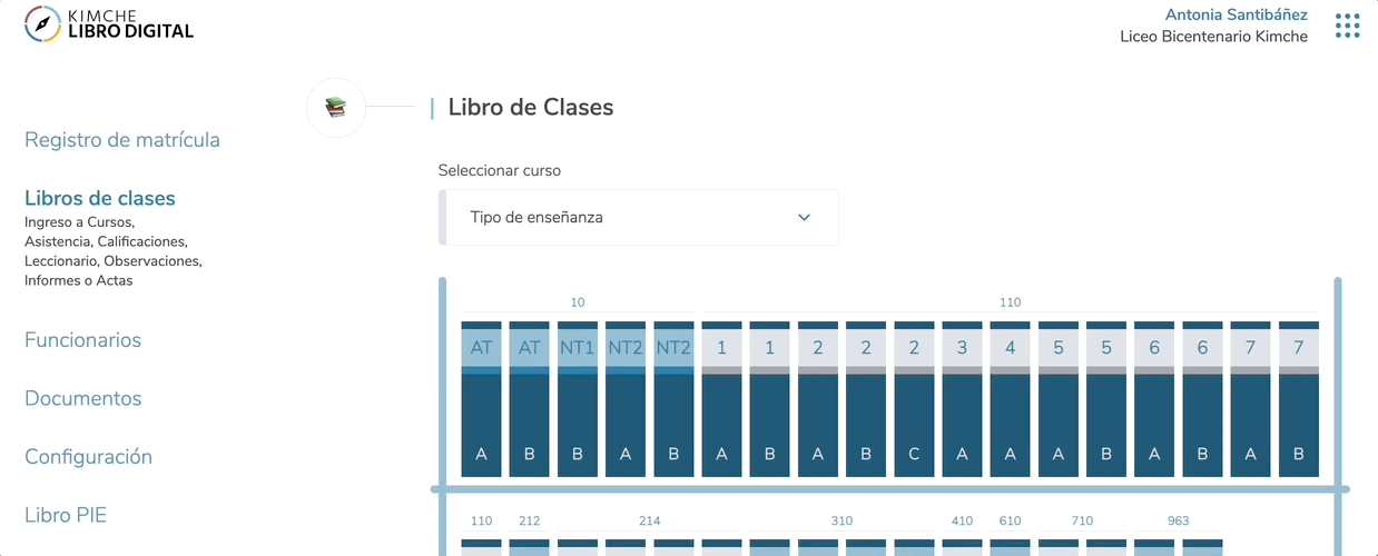 Dirígete al Registro de Matrícula a la izquierda de tu Libro Digital, selecciona un tipo de enseñanza y su curso.