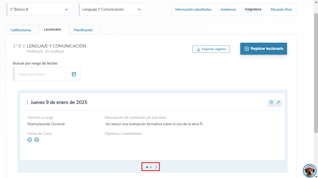 Para hacerlo, dirígete a la pestaña Leccionario en la asignatura y curso en el que impartes clases.