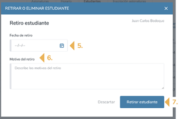5. Para retirar al estudiante debes ingresar su "Fecha de retiro".