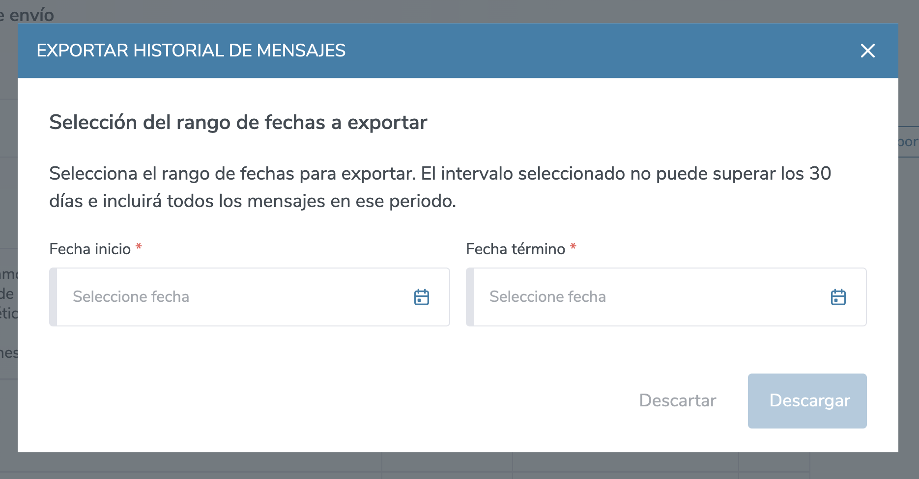 A su vez puedes exportar los mensajes enviados por rango de fechas.