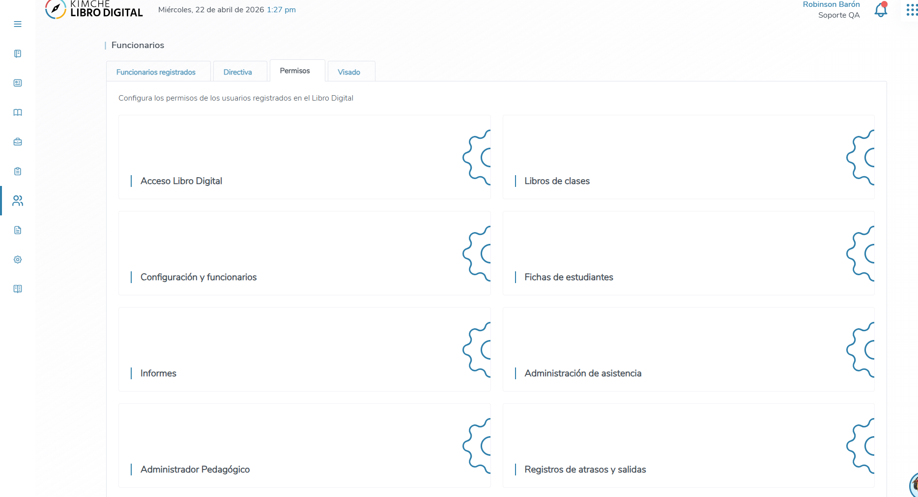 Además de los permisos por rol, es posible personalizar aún más los accesos de cada funcionario mediante permisos específicos. El Director o el Configurador pueden asignar los siguientes permisos, por curso o tipo de enseñanza: